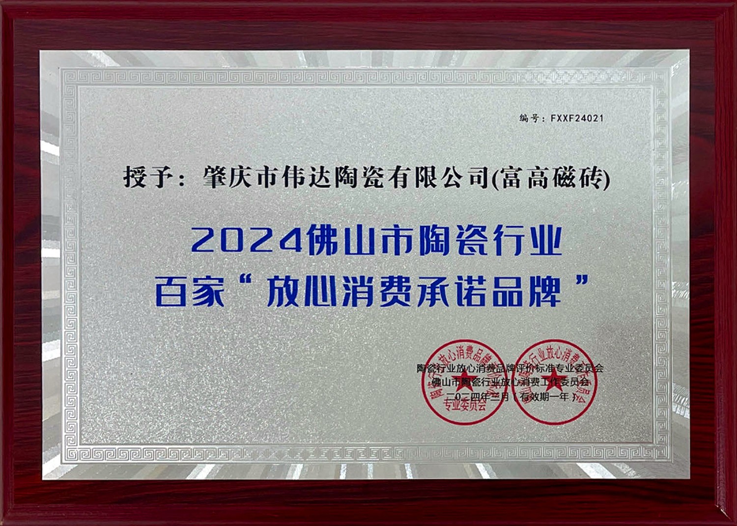 2024佛山市陶瓷行业百家“放心消费承诺品牌”