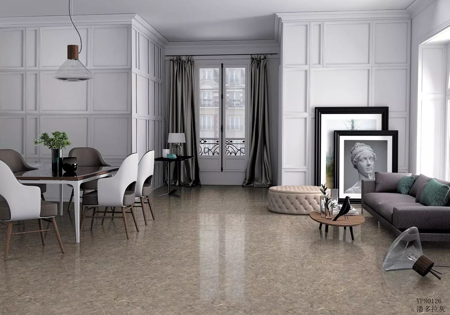富高磁砖,600x1200mm通体大理石瓷砖 克罗亚灰,展现居者对生活的追求。
