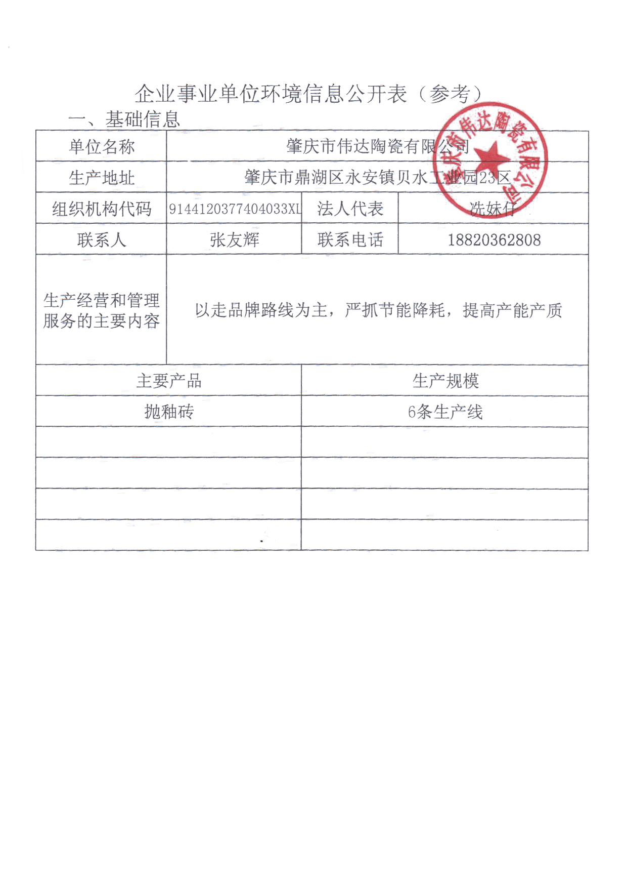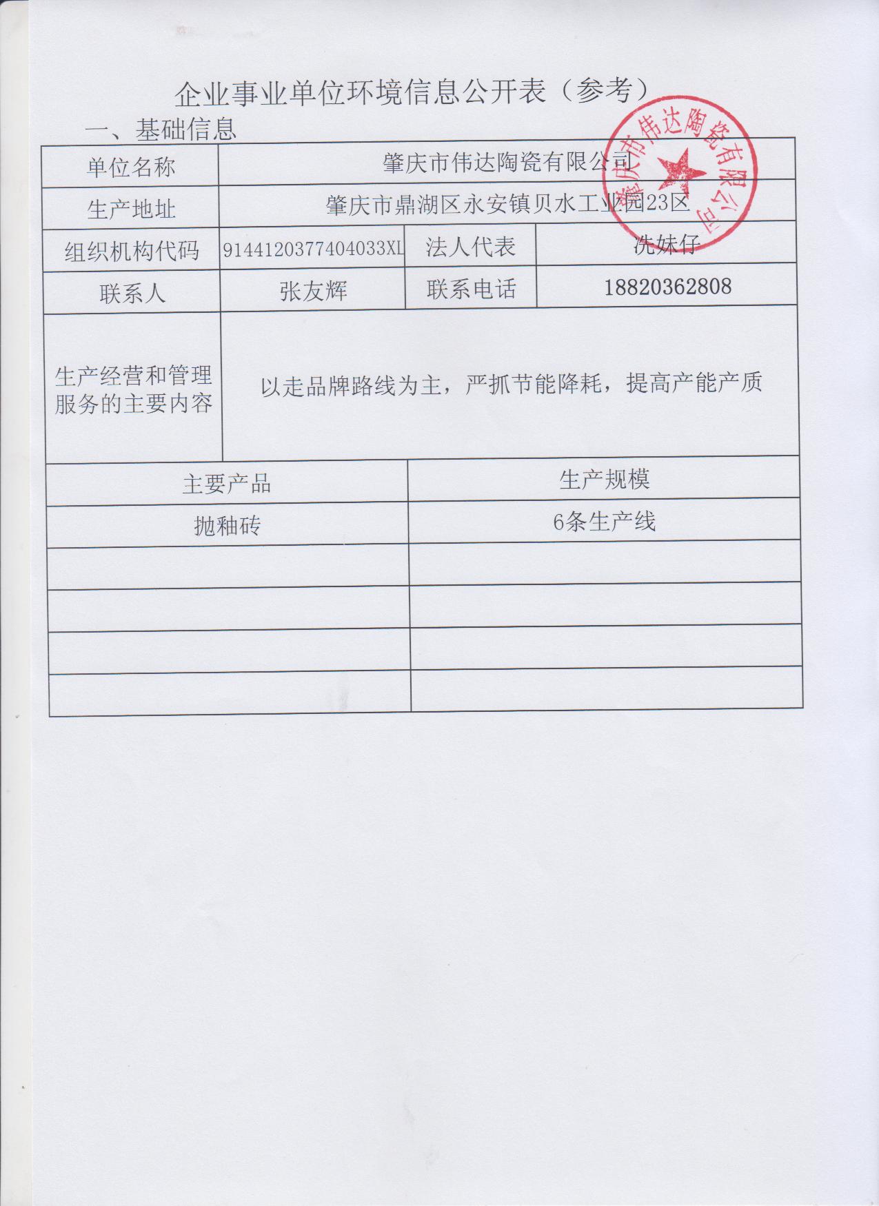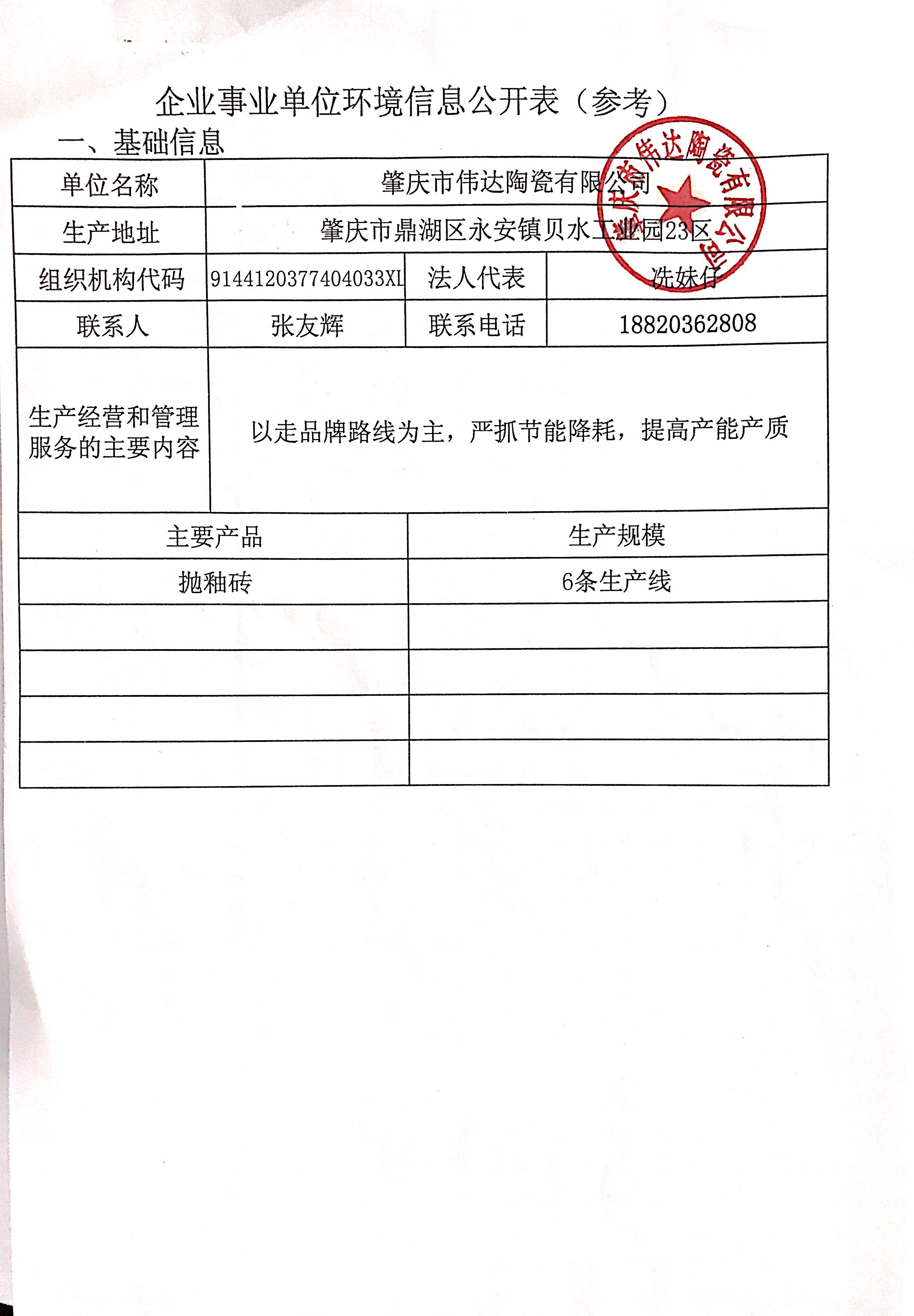 肇庆市伟达陶瓷企业事业单位环境信息公开