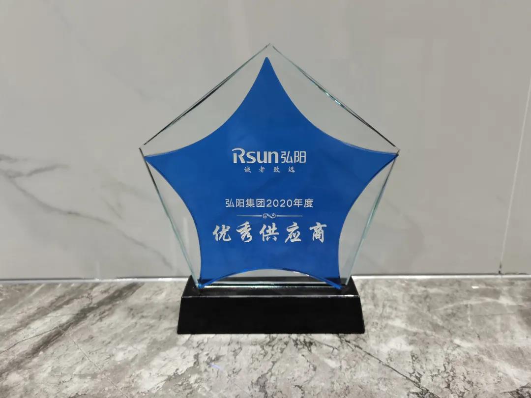 全圣集团凭借高质量的产品、稳定的供货速度、优质的售后服务、专业的方案解决能力等赢得了弘阳地产集团的高度肯定与认可,喜获弘阳地产集团2019-2020年度“优秀供应商奖”殊荣。