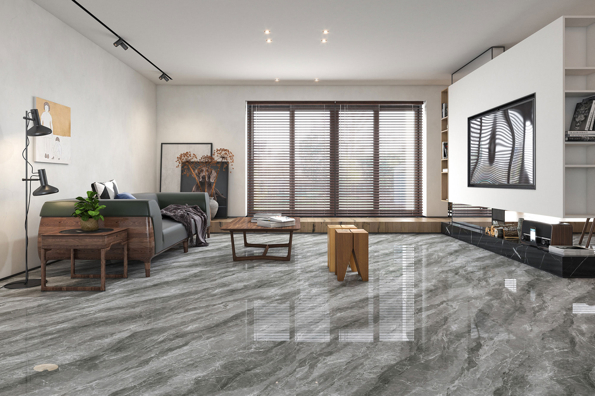 富高磁砖,400x800mm中板通体大理石瓷砖 莫代尔灰,让空间充满质感。