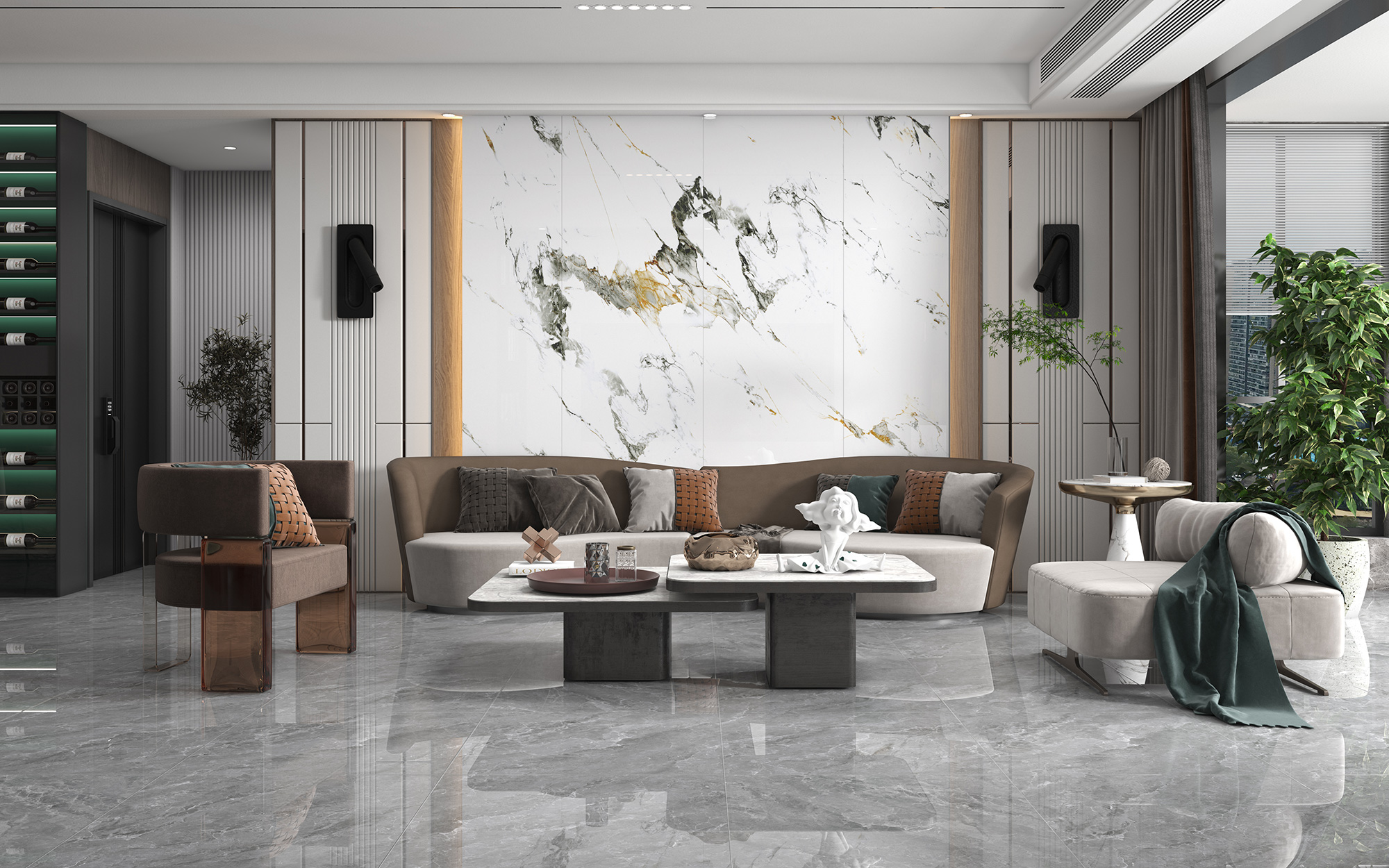 富高磁砖,600x1200mm通体大理石瓷砖,展示独特的空间美学。