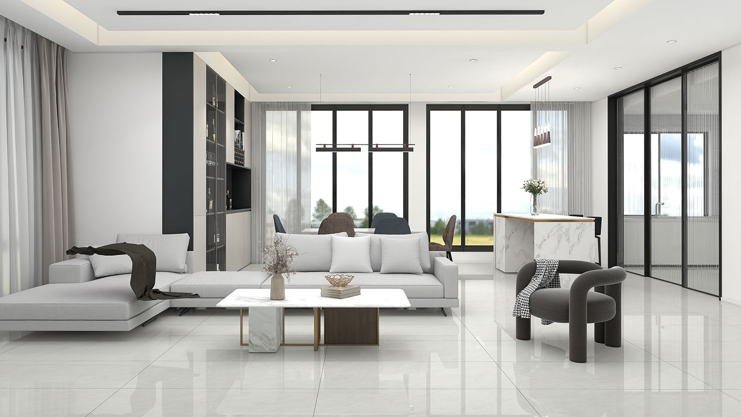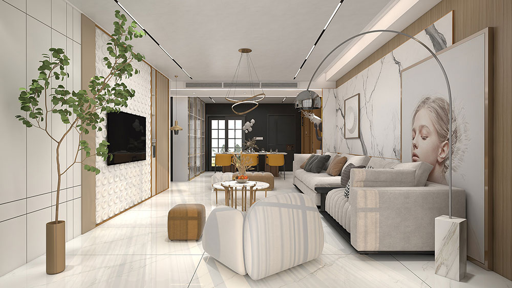 富高磁砖,900*1800mm大板 东方玉白,勾勒空间的时髦与精致。