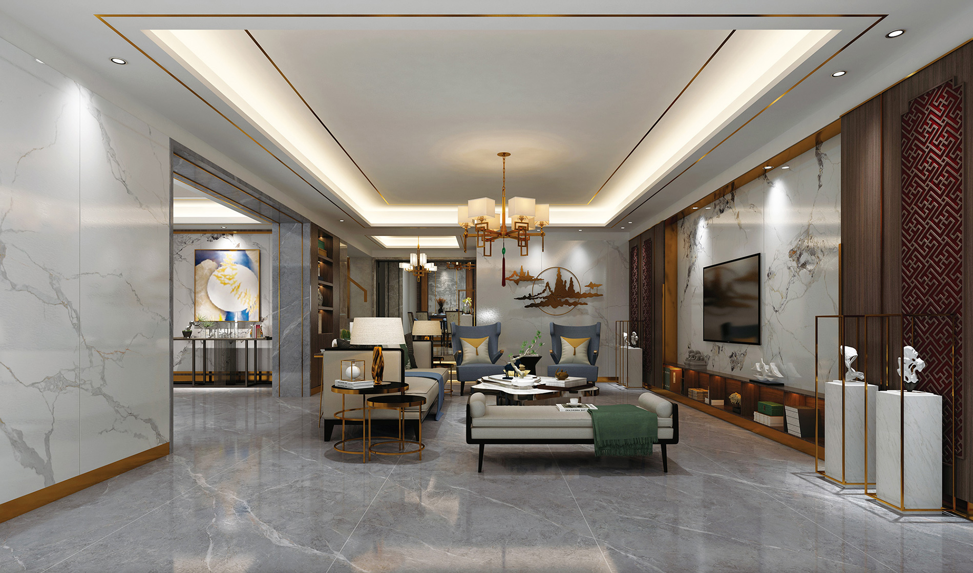 富高磁砖,900*1800mm大板 烟影流香,为空间增添质感。