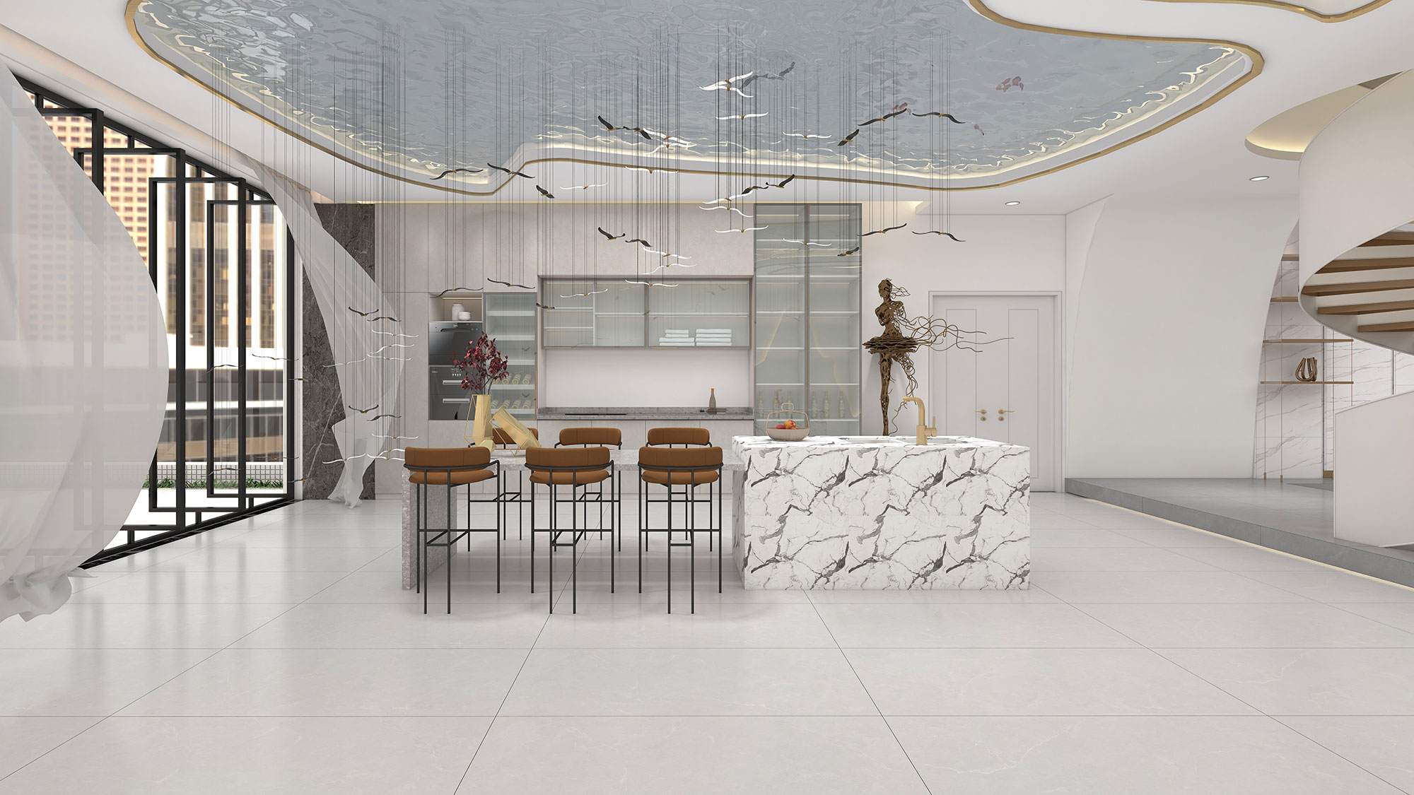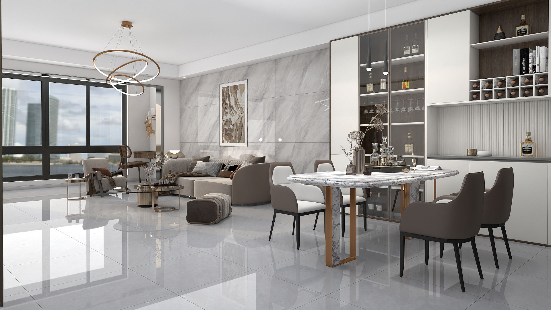 富高磁砖,800*2600mm岩板,源于对轻奢时尚空间的追求与渴望,珍稀自然的大理石纹,使空间开阔灵动,浑然一体,为空间注入不平凡的气质。