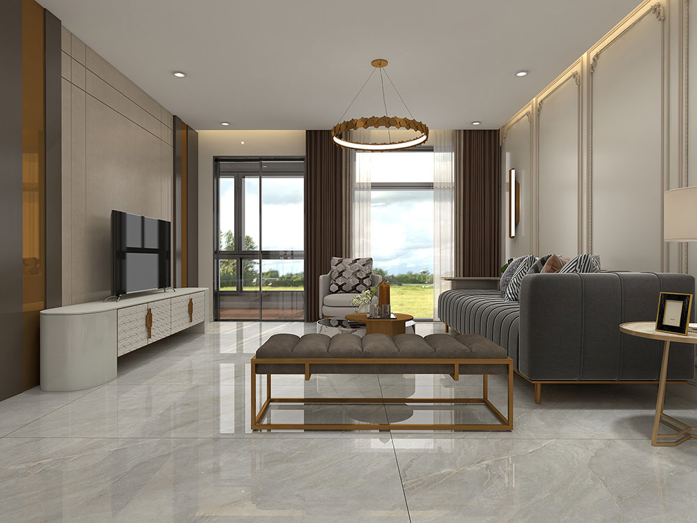 烟影流香大板打造的客厅,充满高级感。柔软的布艺与实木展现出轻松的舒适感。极致的灰色调为空间增添了质感,精致的吊灯悬挂在客厅中央,散发着轻奢的魅力。