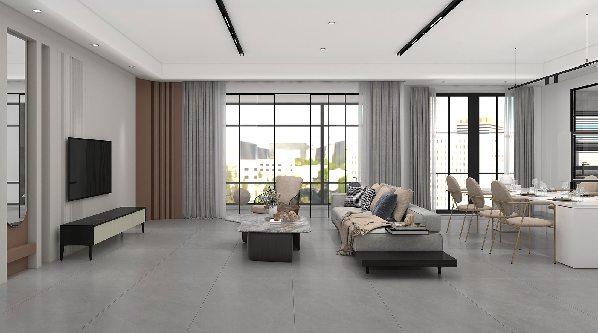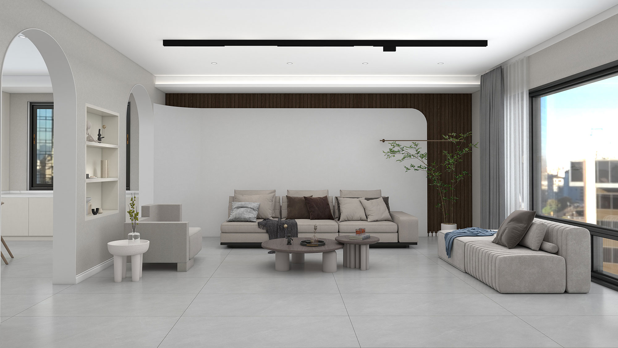 这是一间高级灰的客厅空间